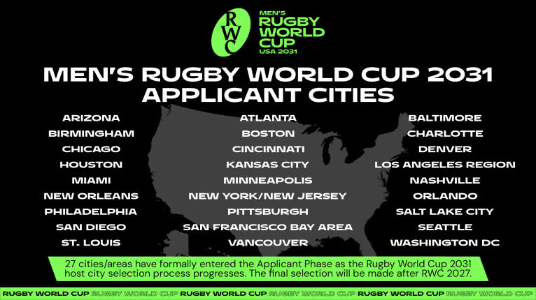 27 villes candidates pour accueillir la Coupe du Monde de Rugby 2031 aux États-Unis