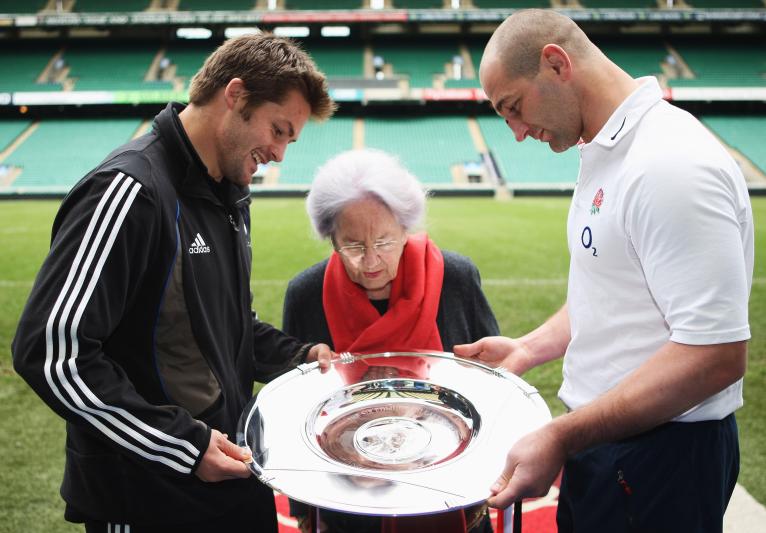 C’est à sa mort en 2008 que l’idée est venue de lui dédier un trophée, le Hillary Shield, qui a pour la première fois été mis en jeu à Twickenham, le 29 novembre 2008. Et qui était capitaine de l’Angleterre à ce moment-là ? Steve Borthwick, et oui, l’actuel sélectionneur. Alors qu’il était joueur (57 sélections), il n’a jamais battu les All Blacks en sept rencontres.