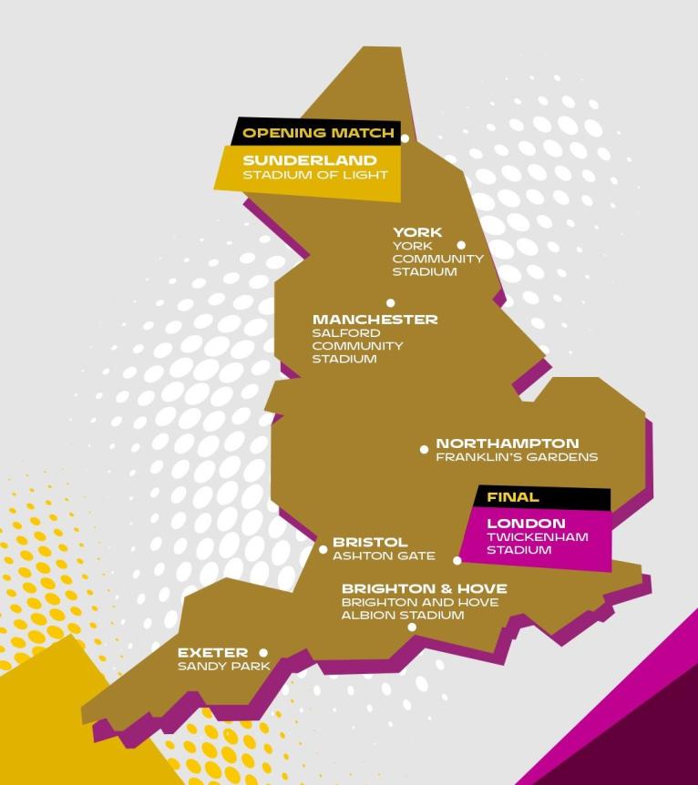 La plus grande Coupe du Monde de Rugby Féminin à ce jour se déroulera dans huit villes à travers l’Angleterre. Le tournoi débutera au Stadium of Light le 22 août 2025, et la finale se tiendra au stade de Twickenham le 27 septembre.