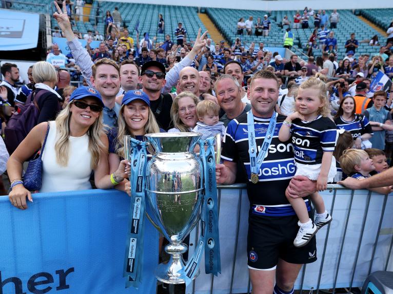 Quelques minutes avant, Bath Rugby a en effet remporté la finale du championnat d’Angleterre de rugby contre Leicester (23-21), son premier titre de champion depuis 1996, concluant une saison presque parfaite, avec trois trophées.