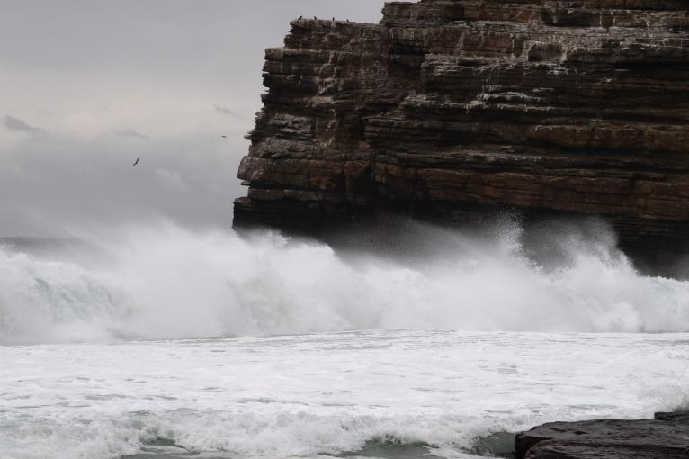 Les vagues se brisent sur la plage de Dias Beach, dans la réserve de Cape Point, d'où un lycéen français de 17 ans, en tournée de rugby, a disparu en mer, le 08 août 2024, au Cap. Medhi Narjissi, joueur de l'équipe de France des moins de 18 ans, a disparu en mer en Afrique du Sud, en marge d'un tournoi international, a annoncé mercredi la Fédération française de rugby (FFR). (Photo by RODGER BOSCH / AFP) (Photo by RODGER BOSCH/AFP via Getty Images)