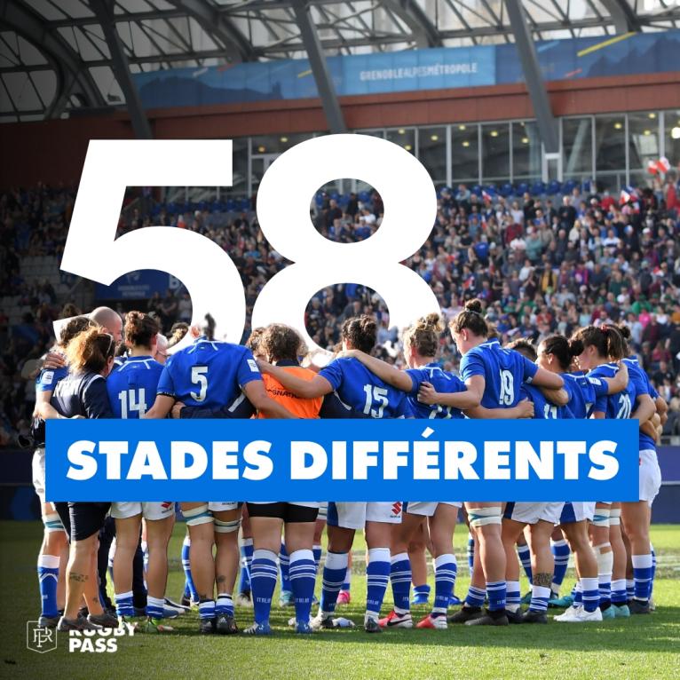 Sur 208 test-matchs disputés depuis 1991, le XV de France féminin en aura joué 81 à domicile (après le Tournoi des Six Nations 2024)… dans 58 stades différents ! Un véritable tour de France qui valide la politique de la FFR d’aller jouer dans des « territoires pauvres » en rugby féminin.