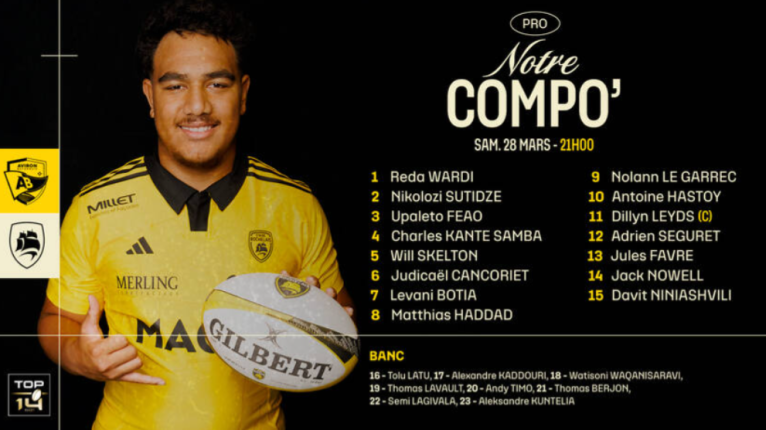 La composition d’équipe pour cette délocalisation à Anoeta, face au Stade Rochelais avec un coup d’envoi à 21h00. Les dernières places disponibles 🎫 : https://t.co/rsUcqSogfl