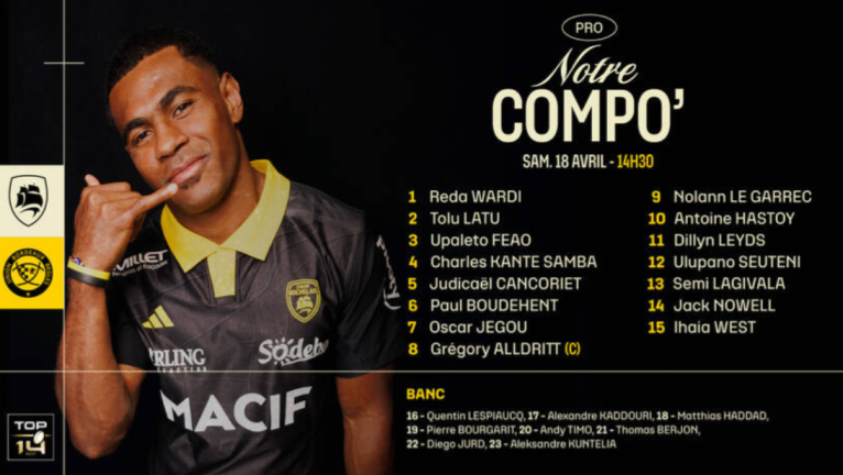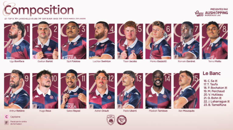 Voici la composition de La Rochelle pour la réception de l'UBB. (Crédit image : Stade rochelais).