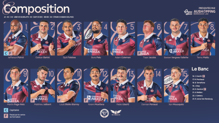 The Scarlets team to face @UBBrugby on Saturday at Stade Chaban-Delmas (KO 17:30 UK).
