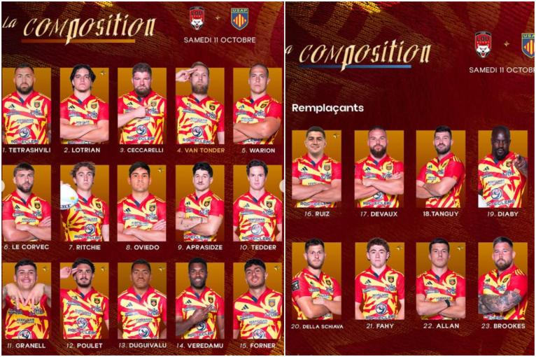 Découvrez la composition retenue par Karim Ghezal et son staff pour la réception de l’USAP, ce samedi 11 octobre à 16h35 au Matmut Stadium 🔥