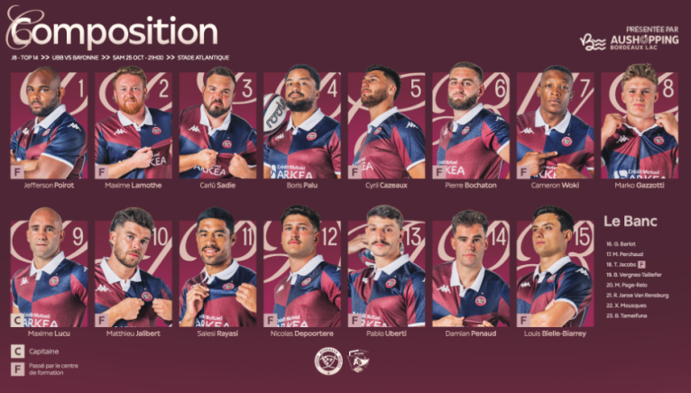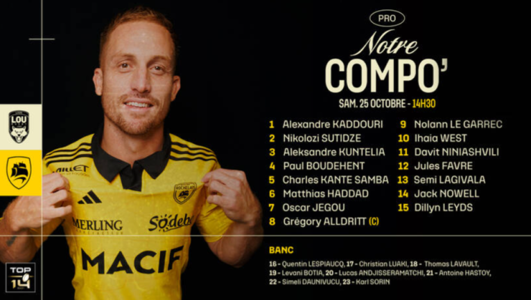 Découvrez la compo retenue pour affronter le Stade Rochelais ce samedi au Matmut Stadium 🔥