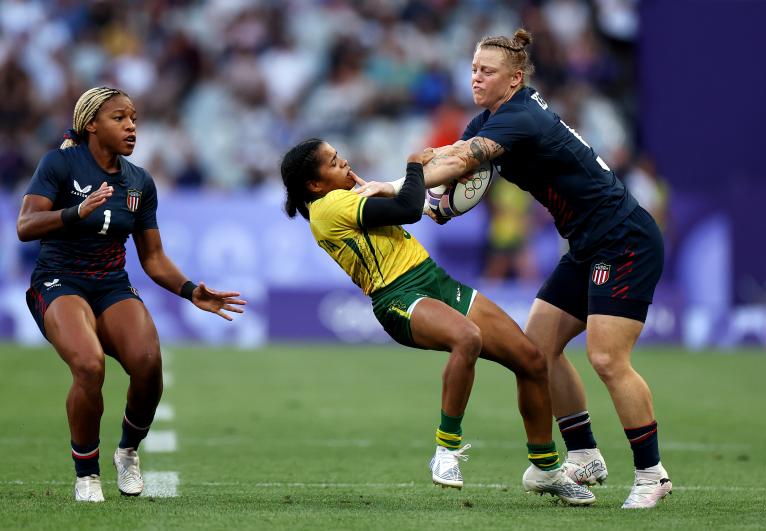 Pour cette première confrontation entre les deux équipes aux Jeux olympiques, le Brésil a montré une belle résistance en première période face à des Américaines motivées. La légende Alev Kelter, qui vit là ses troisièmes JO, a navigué au travers de la défense pour marquer son premier essai du tournoi et ouvrir le score.
