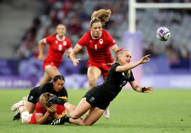Le début de la rencontre de Paris 2024 a été enlevé, les Canadiennes croyant en leurs chances à tel point que les deux équipes étaient à 7 partout au bout de trois minutes (essais de Jorja Miller et Charuty Williams). Plus rapides que les Chinoises qui n’avaient pas les jambes pour rattraper Michaela Blyde et ses partenaires, les Canadiennes n’ont pas facilité la tâche aux Néo-Zélandaises obligeant par exemple Risi Pouri-Lane à aplatir sur la ligne. L’essai transformé de Miller à la pause rassurant les filles en noir (19-7).
