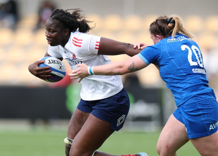 Bio : Née en Guinée et élevée dès l’âge de 7 ans en banlieue parisienne, Madoussou Fall-Raclot est l’une des poutres du pack tricolore. Elle qui a découvert le rugby à 11 ans à l’école a dû batailler pour imposer sa passion. Moquée pour sa grande taille (1,80m à 16 ans), elle met sa puissance au service du jeu, capable de tracter quatre joueuses en avançant, d’abord à Bobigny puis avec les Lionnes du Stade Bordelais. En 2022, elle fait partie de la Dream Team féminine aux World Rugby Awards.