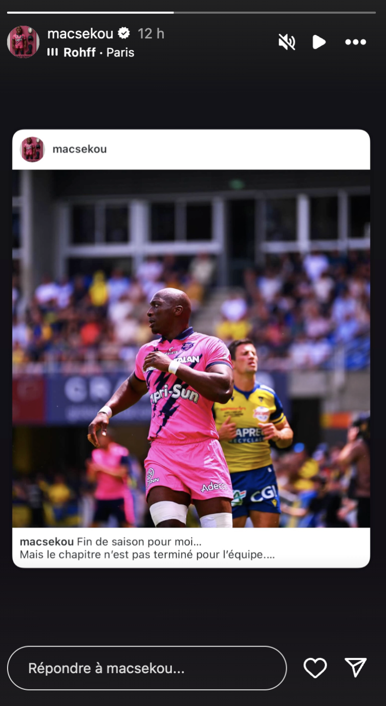 « Fin de saison pour moi… Mais le chapitre n’est pas terminé pour l’équipe. Un match capital nous attend à Jean Bouin », a écrit le joueur lundi soir sur son compte Instagram.