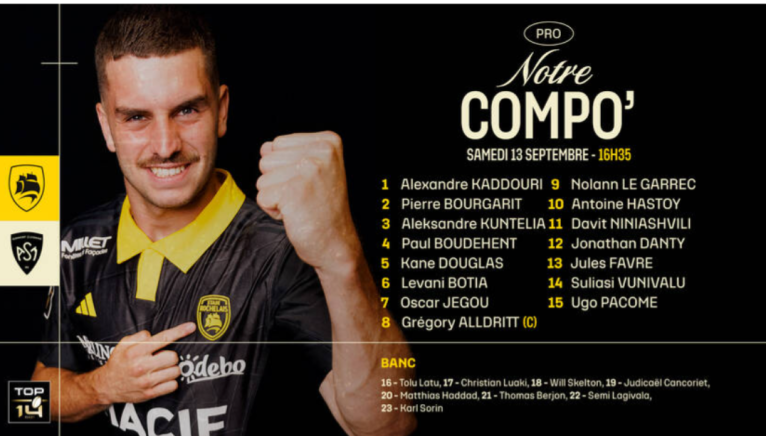 Découvrez la composition pour notre second match de Top14 offerte par notre partenaire David Giralt Iad France 🔥