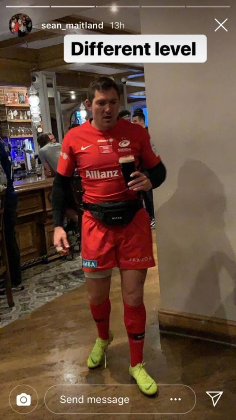 Joining his teammates for celebrations, the 31-year-old fullback still hadn’t changed out of his match kit a full 24 hours later, walking around the pub still with his boots on. Sean Maitland documented Goode’s exploits on his Instagram, stating that Goode is on a ‘different level’ before tagging England Rugby’s official account to notify them of Goode’s availability.