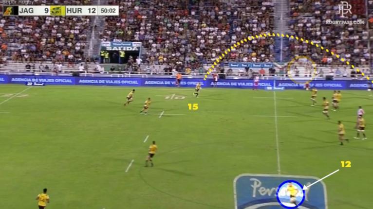 Another phase play scenario was from opposition exit kicks. Having the opposition deep in their own territory is a good starting point. If the clearance failed to find touch, the Hurricanes had possession in striking range.