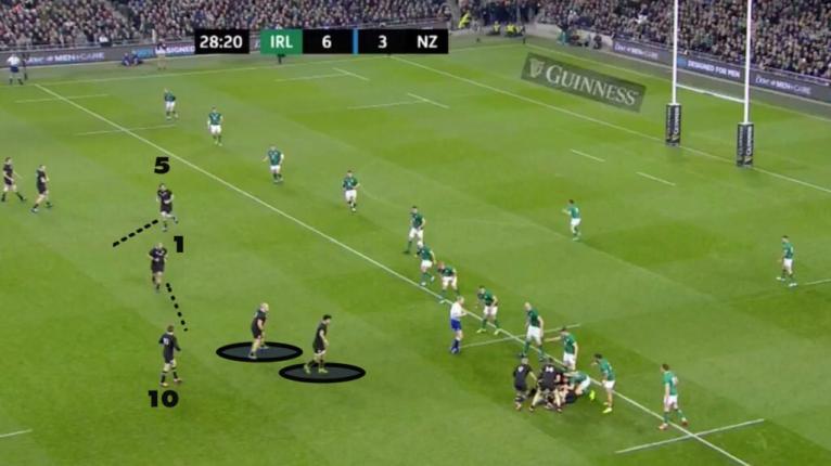 This just isn’t All Blacks rugby in 2018 – they tend to stick with a width game inside the opposition 22, staying within their pattern and playing edge-to-edge through back door passes. However, this tight game off 9 is what Ireland do inside the opposition 22.