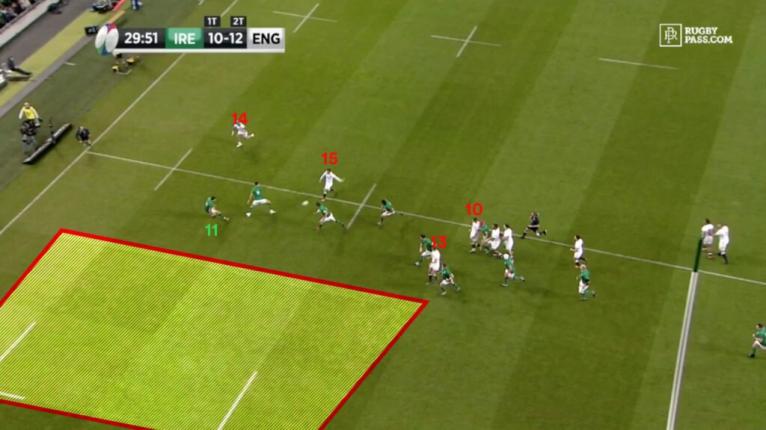 Following Ireland’s opening try, England were able to dictate terms using the kickoff to arrest territorial control.