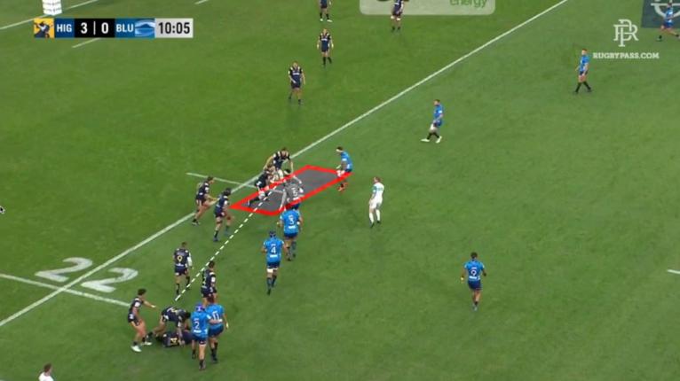 This has become the foundation on which the Highlanders are building their set-piece attack from and allows them to incorporate many of their kicking principles – get the ball in the air or on the ground as much as they can. They have only scratched the surface with the number of ways they can attack from this formation. Expect the Highlanders to integrate the Sopoaga back-door option as the season goes on, which brings into play his cross-field kicking.
