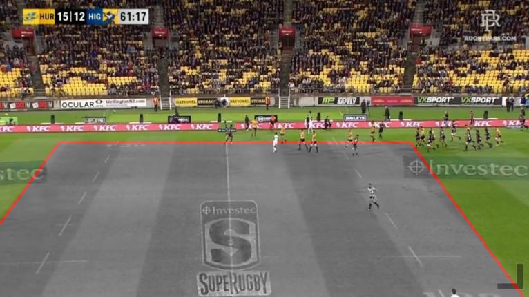 The Highlanders will clear their lines if they are deep inside their 22, but if not, they will work into a position on the 15m tramlines for a Smith box kick.