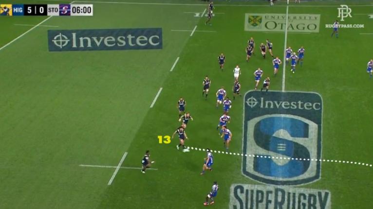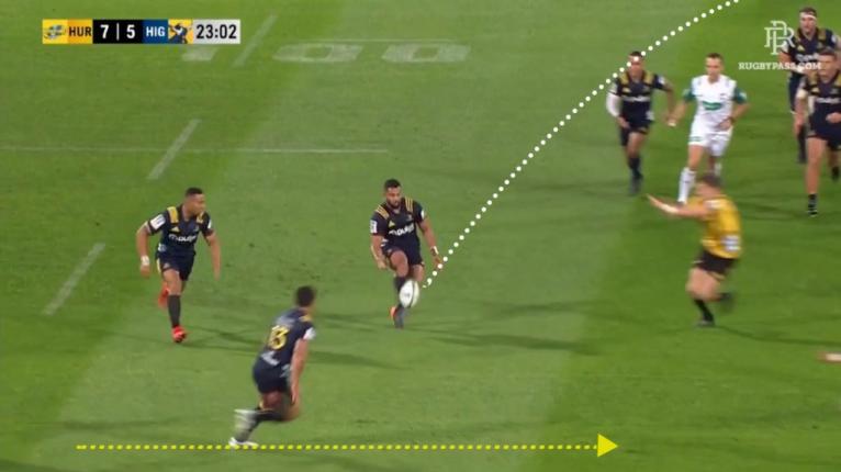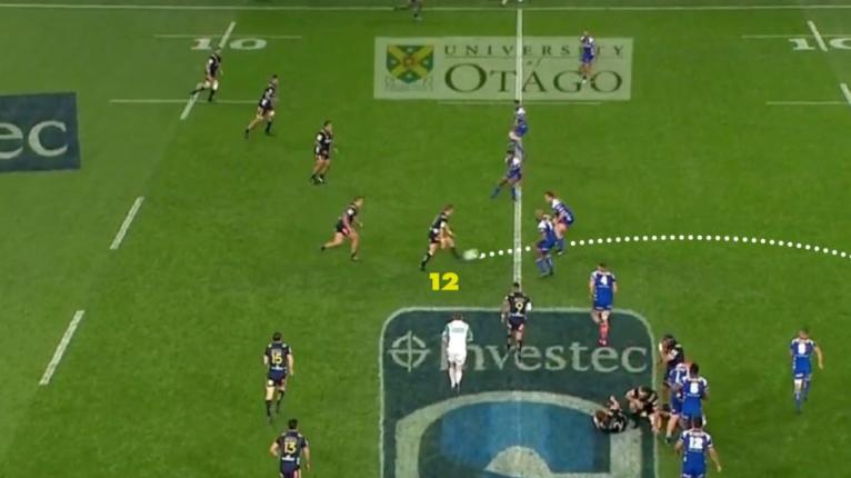 As the four players involved in this formation are all legitimate kicking options, the Highlanders can run a number of variations of the play with attacking kicks built in.