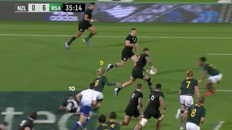 With one less supporting player and de Klerk still in pursuit, the Springboks have a better chance of shutting down the situation. Against the All Blacks who kill teams once a line break is made, limiting the numbers of support players can save seven points.