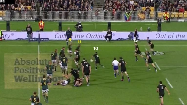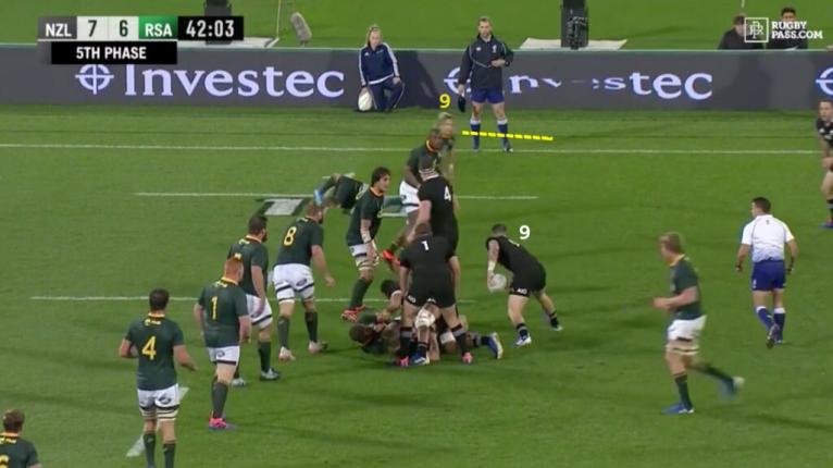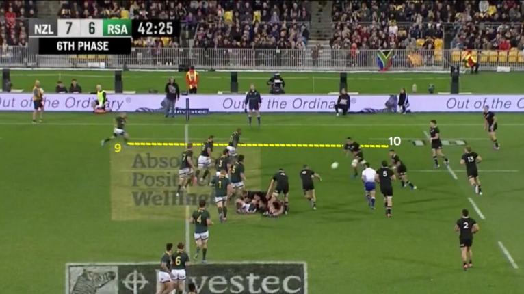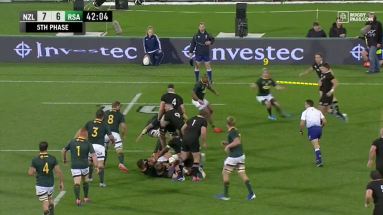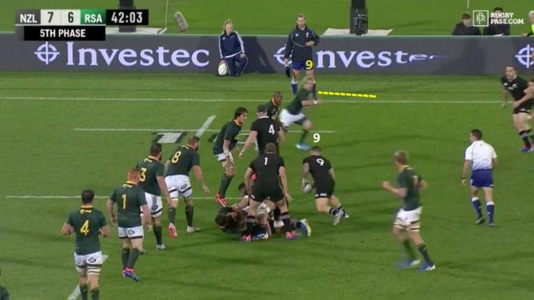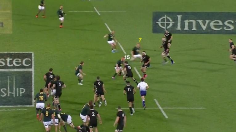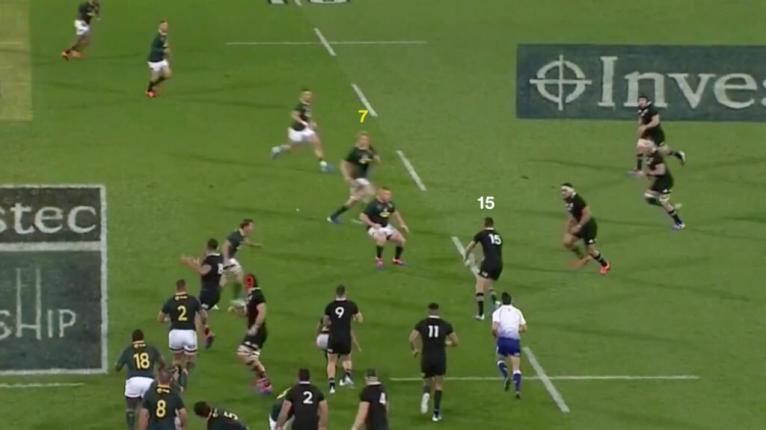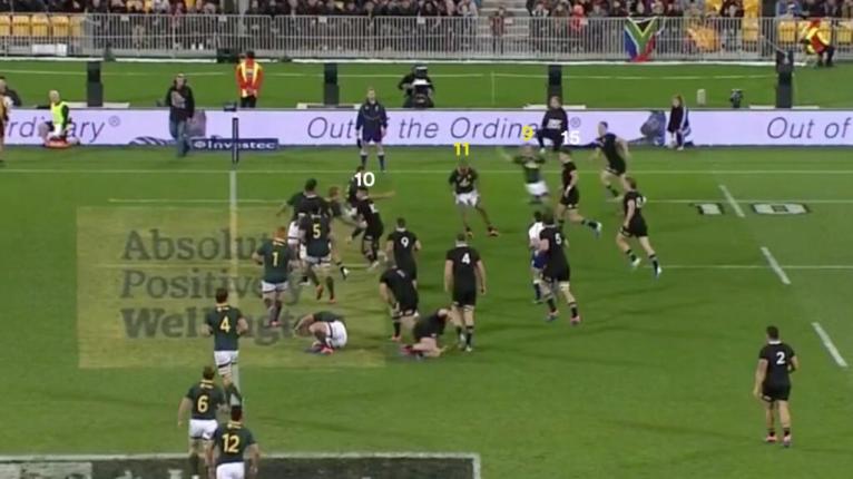 With the All Blacks using their new ‘flush’ system where the ball always goes out the back to first receiving option, the Springboks were bringing the heat up the middle all night where the ball usually ends up for a carry.