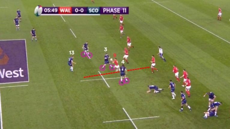 By not timing a run before the halfback has picked up the ball, setting up too wide, and then not even running to meet the ball while it was being delivered, Scotland ship five points.