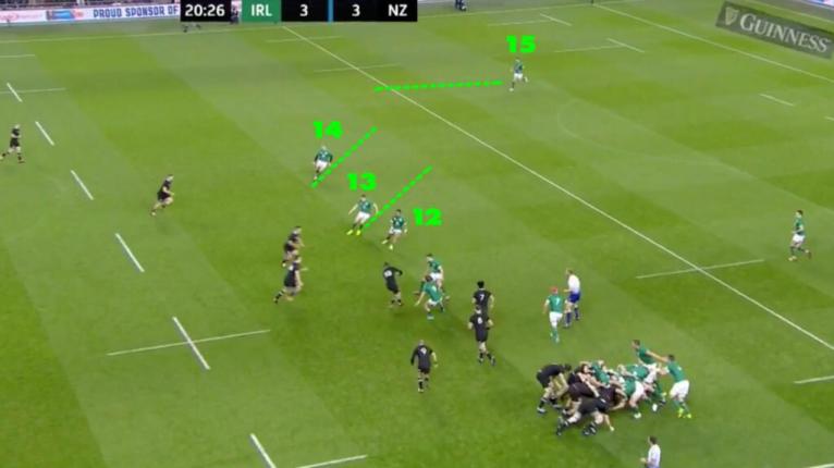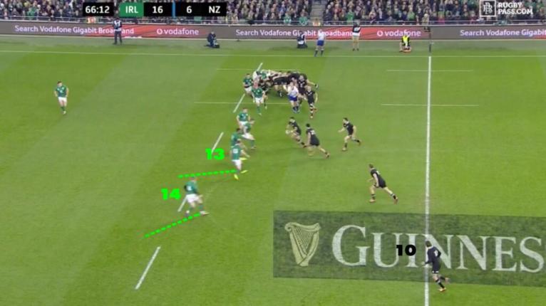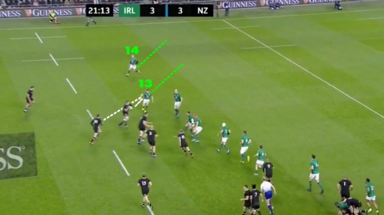 Irelandâs centre Garry Ringrose (13) and Keith Earls (14) were phenomenal in pulling this tactic off. Itâs highly disruptive in theory but actually executing it and containing the opposition is extremely difficult.