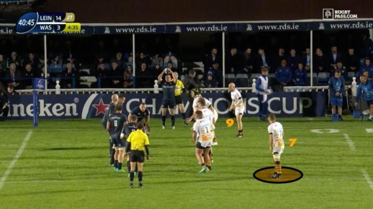 Wasps have switched up their lineout defence, using their halfback as the hooker and their open side as the halfback, meaning their actual hooker is defending out somewhere in the backline.