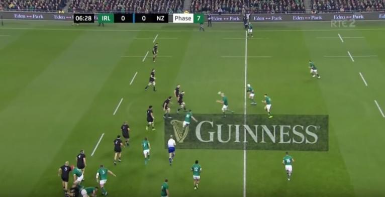 In the very first GIF in this dynamic, we saw an Irish loss of possession. The pressure that each attacker is put under as they go down the line is huge. On top of this, when the attack moves wide, the likeliness of turnover with the fall of the whip is only heightened.