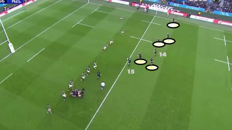 With a linear, flat, line your only real option is to pass to the next man. And that’s what the All Blacks often did, using simple hands most of the time to find the edge where forwards like Kieran Read and Dane Coles resided.