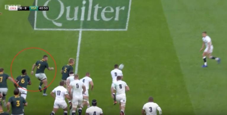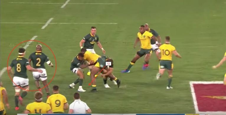 We can see this with Siya Kolisi and Pieter Steph-Du Toit in the ten channel, with Steph-Du Toit closing Hamish Watson into Duane Vermuelen.
