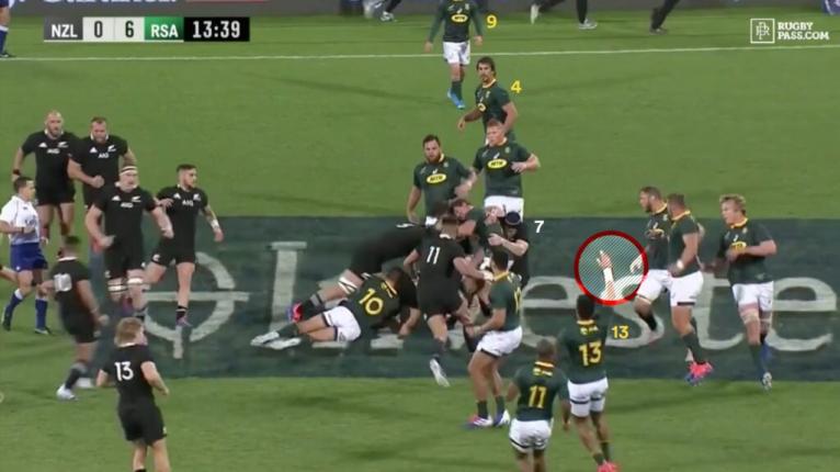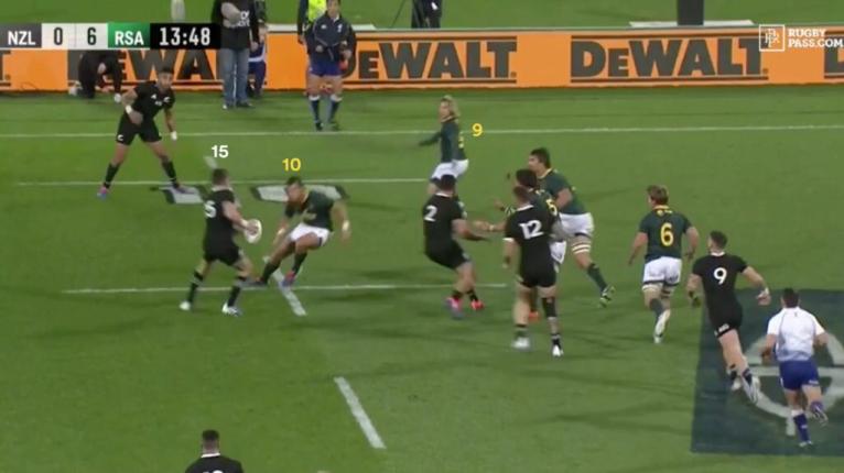 The ‘comms’ from Lukhanyo Am is an integral part of the Springboks ability to shut this down effectively, seen below at the bottom right of the screen.