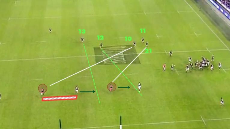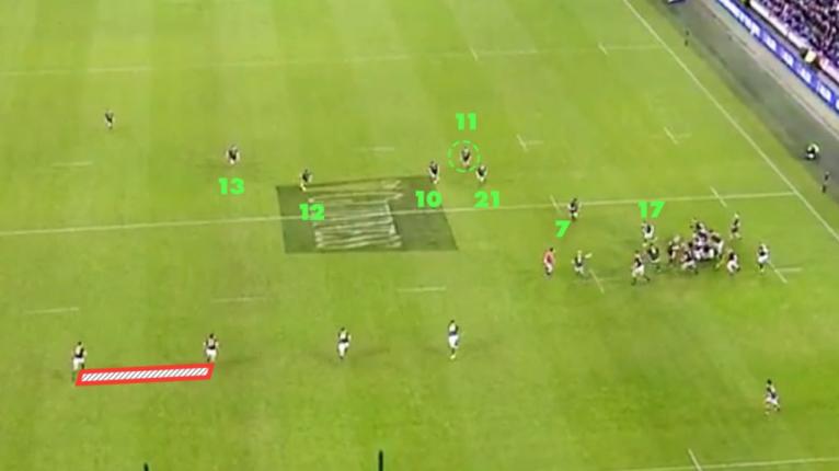 Attaching the blindside winger as an inside option off the playmaker and using a ‘screen’ or ‘block’ play to open up the hole is becoming a trend this international rugby season, as we highlighted last week.