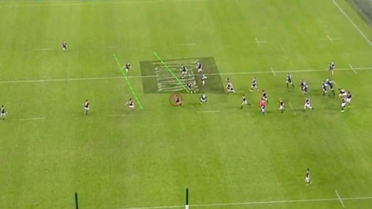 Henshaw’s line also prevents Pollard from getting across to make a play on Scotdale, giving an extra second in which the gap will be open which is a key design feature of this play. It’s essentially legalised obstruction.