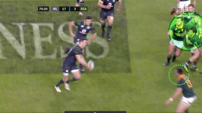 Two phases later Ireland score as South Africa cannot reset their defence following the massive breach. The killer blow is landed taking Ireland out to a 22-3 lead with less than eight minutes remaining.