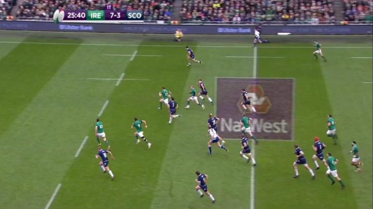 Ireland utilised a range of misdirection concepts in the game plan against the Scottish, designed to exploit and even coerce the opposition into over committing one side of the field before striking on the other. These were used infrequently enough to keep Scotland guessing, and found success on Stockdale’s second try.