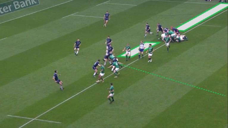 Murray decides the reload switch is on and fires back left to centre Ringrose. Up to five Scottish defenders are caught in close space around the ruck leaving them vulnerable on the edges.