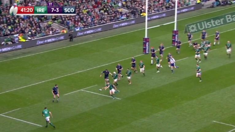 Aki passes back to Ringrose and he rips off a huge gain for Ireland.