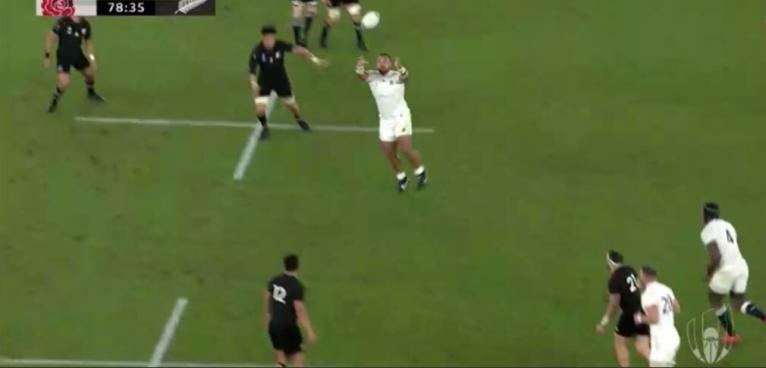 England knew here, that they could get intercepts by getting in-between the receiver and the offload. This is not the first time they did this in this game. Maybe it was something they targeted from the right wing, or with Sevu Reece, but either way, this resulted in game-changing momentum.