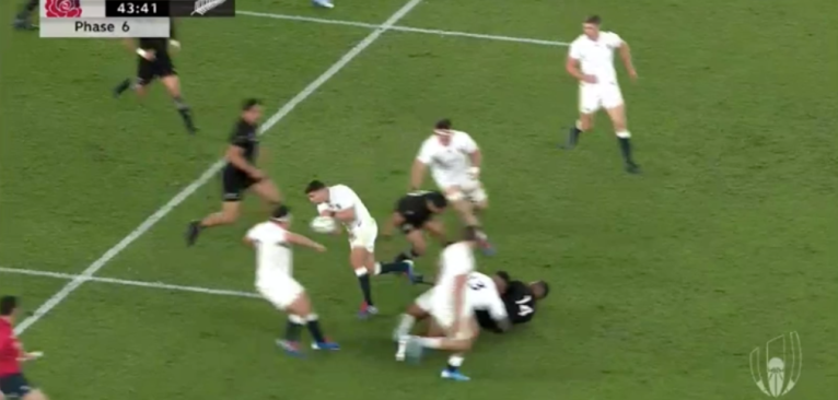 England’s players, but defensive captains in particular, Tuilagi, Curry and Underhill, had the licence to rush up out of line to either cut off a wide attack. Alternatively, they chose to do this when it would result in a large loss in gain line for New Zealand, as to regather the momentum. This was shown especially in the second half, with Underhill’s tackle on Read a textbook example.