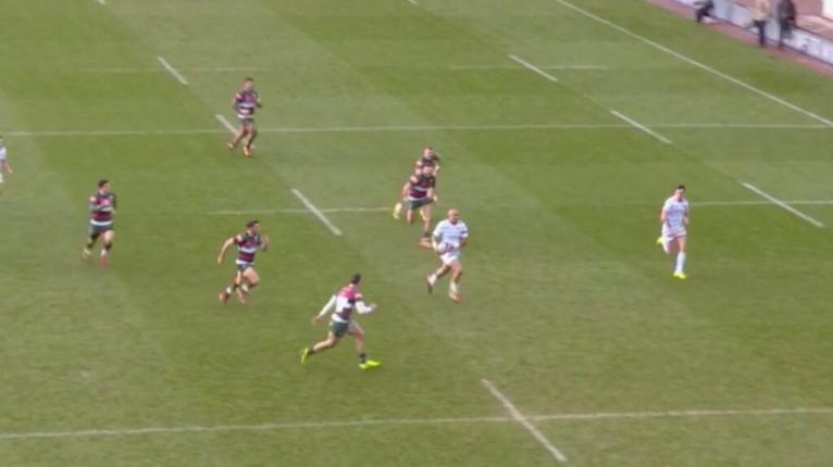 Racing used the same play a week earlier at home at the La Defense Arena with the same result against a porous Tigers’ defence while Manu Tuilagi was in the sin bin. This time Zebo was playing on the right wing and wasn’t required to open up Leicester.