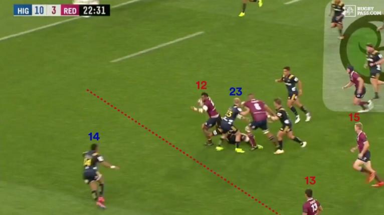 Petaia’s two big line-breaks ultimately resulted in zero points for the Reds. Both opportunities were shut down and turned over to the Highlanders either on that phase or a few thereafter.