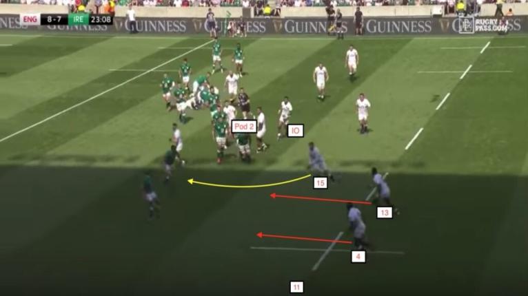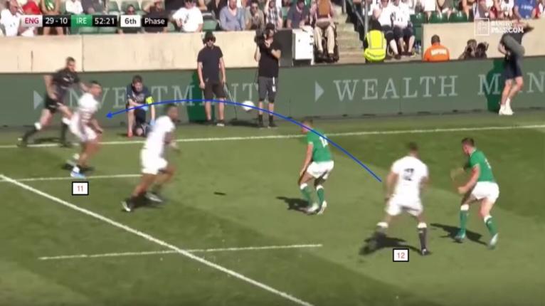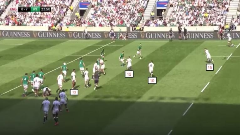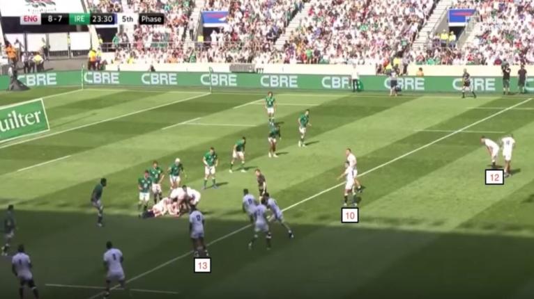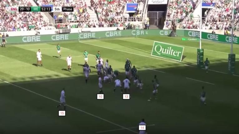 Ireland are wary of the overlap with Cokanasinga and the folding English forwards and have pre-emptively folded around themselves, anticipating the likely off-9 play the same way.