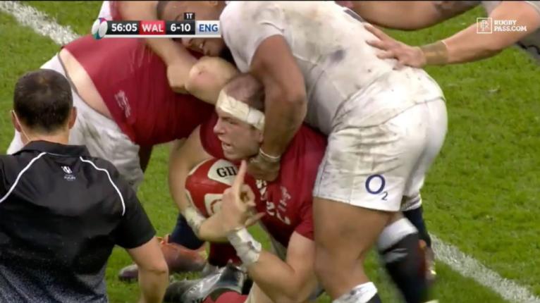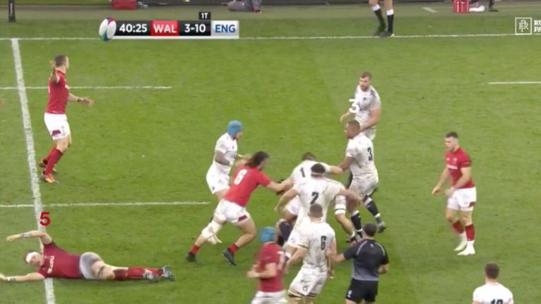 20 seconds later, the England prop is penalised for a ‘late’ shot on Gareth Anscombe after a chip kick, which amounted to not much but was milked for all it was worth.