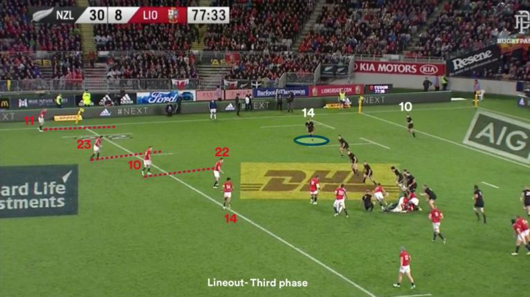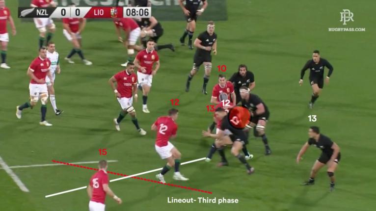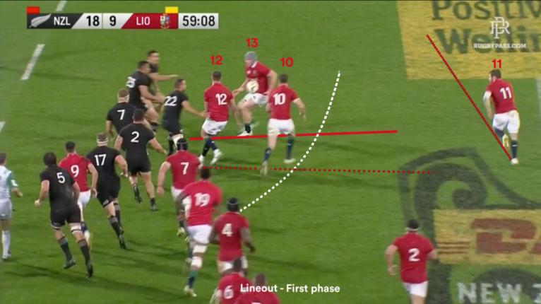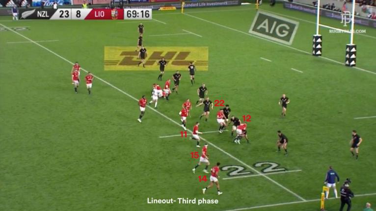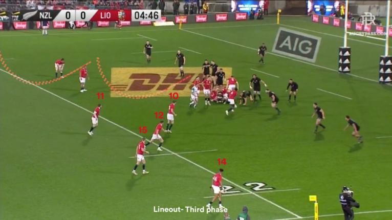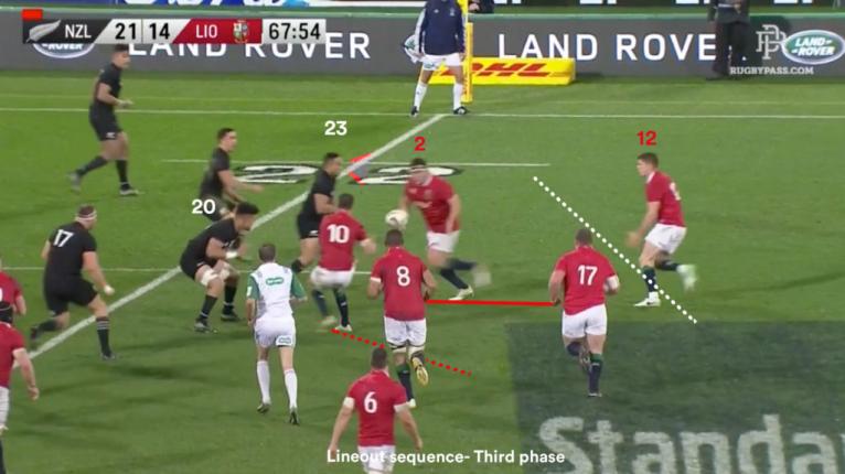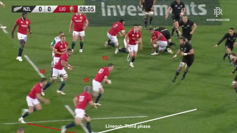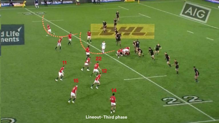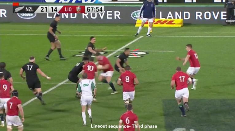 With another lineout platform, the Lions work the same three-phase sequence to the right.