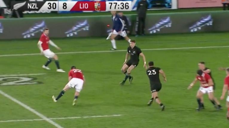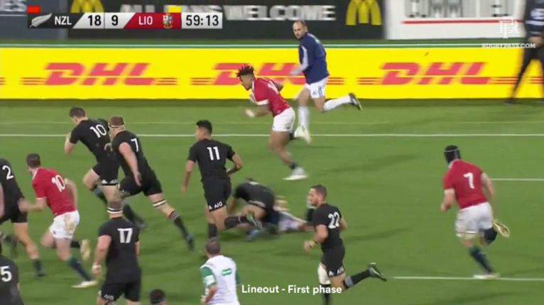 The All Blacks’ containment has failed, and the Lions streak away downfield.