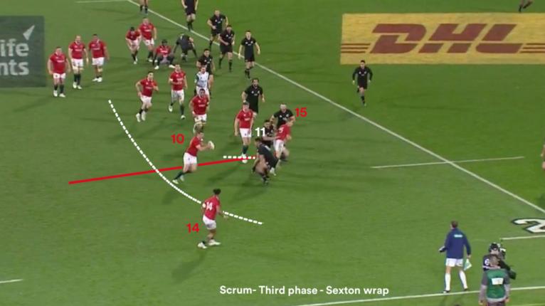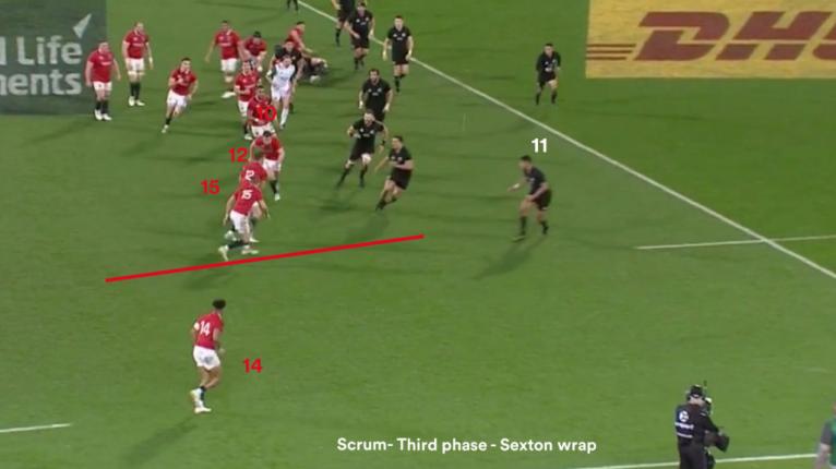 The Sexton-Farrell axis was designed to pick apart the All Blacks on the edges, and it did that. In the second test, the Lions had a 6-1 line break advantage and scored two tries to zero.