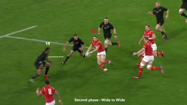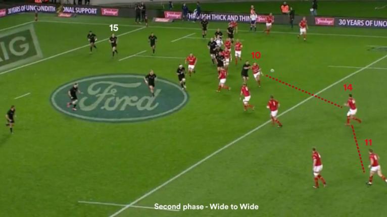 Wales had some success spreading the All Blacks and killing them after back-to-back wide phases.