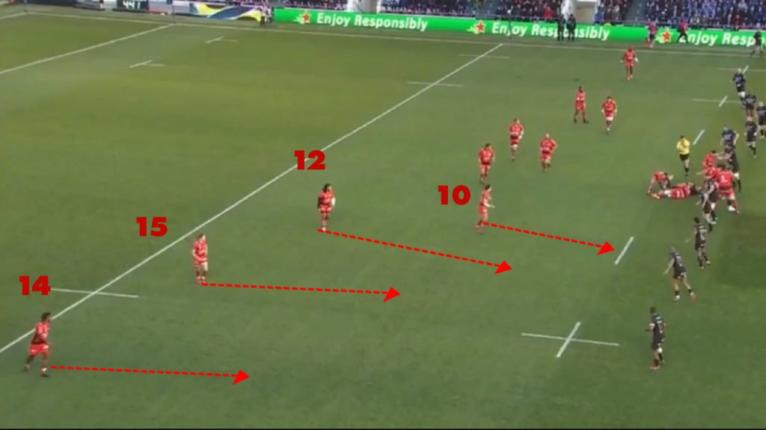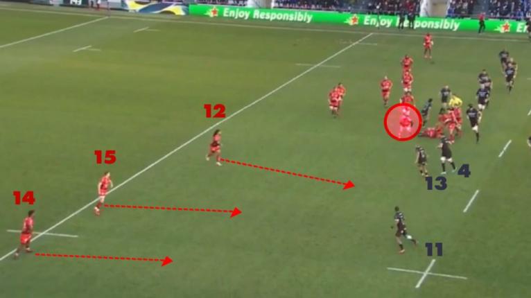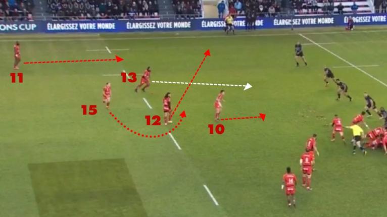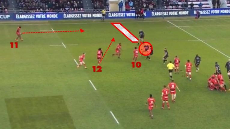 This pattern is typical of Toulon play – forward carries in pods moving the same way for a few phases and then a release to the backs.