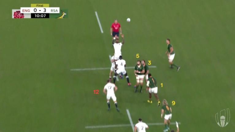 Utilising a four-man lineout package to take loose forwards away from the edge, they tried to catch the Springboks too thin on the short side on a second phase switch.